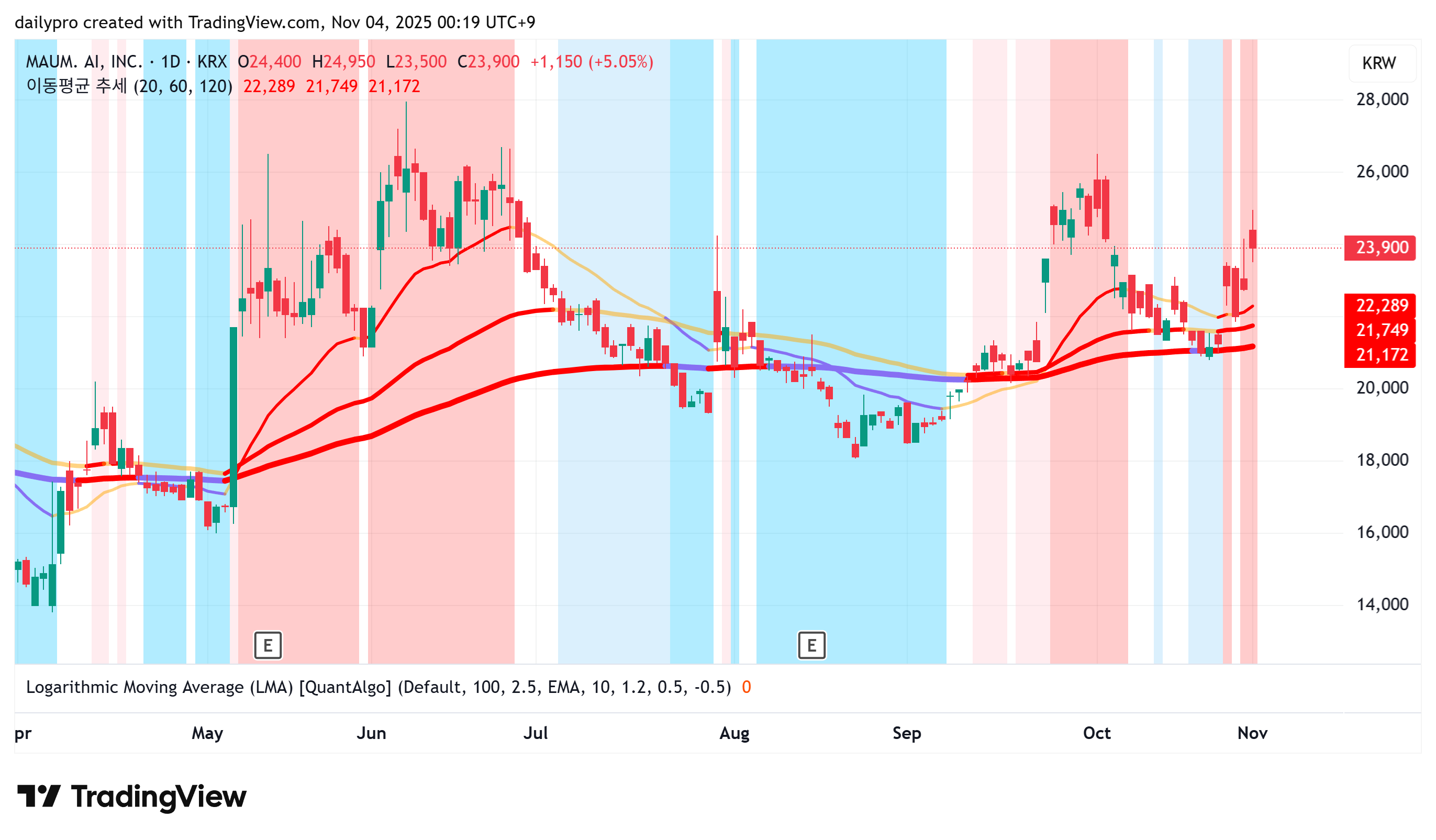 | 2025-10-27 | 마음AI | 21,150.00 | 23,940.00 | 21,700.00 |