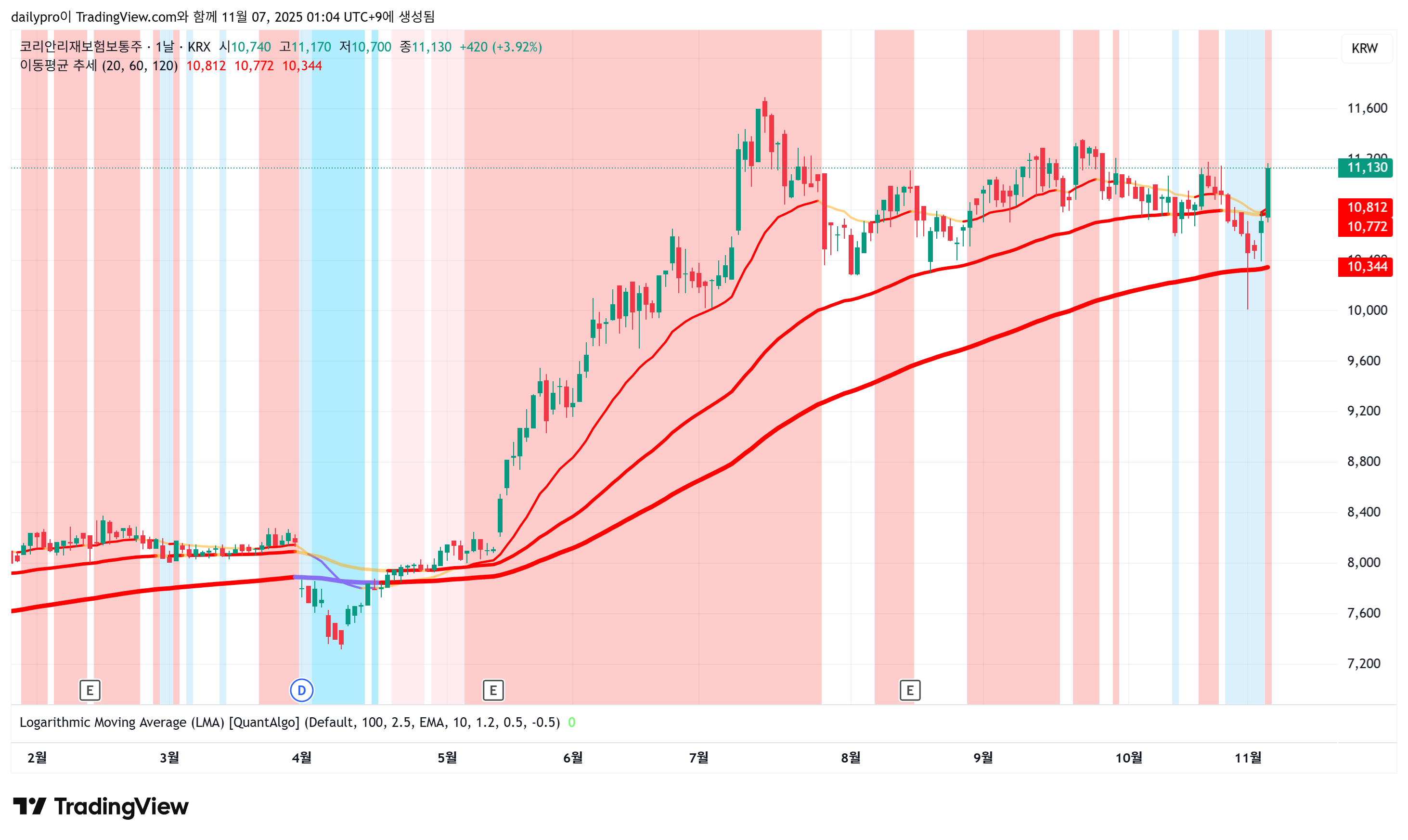 | 2025-11-06 | 코리안리 | 11130 | 10810.5 | 10886.33 |