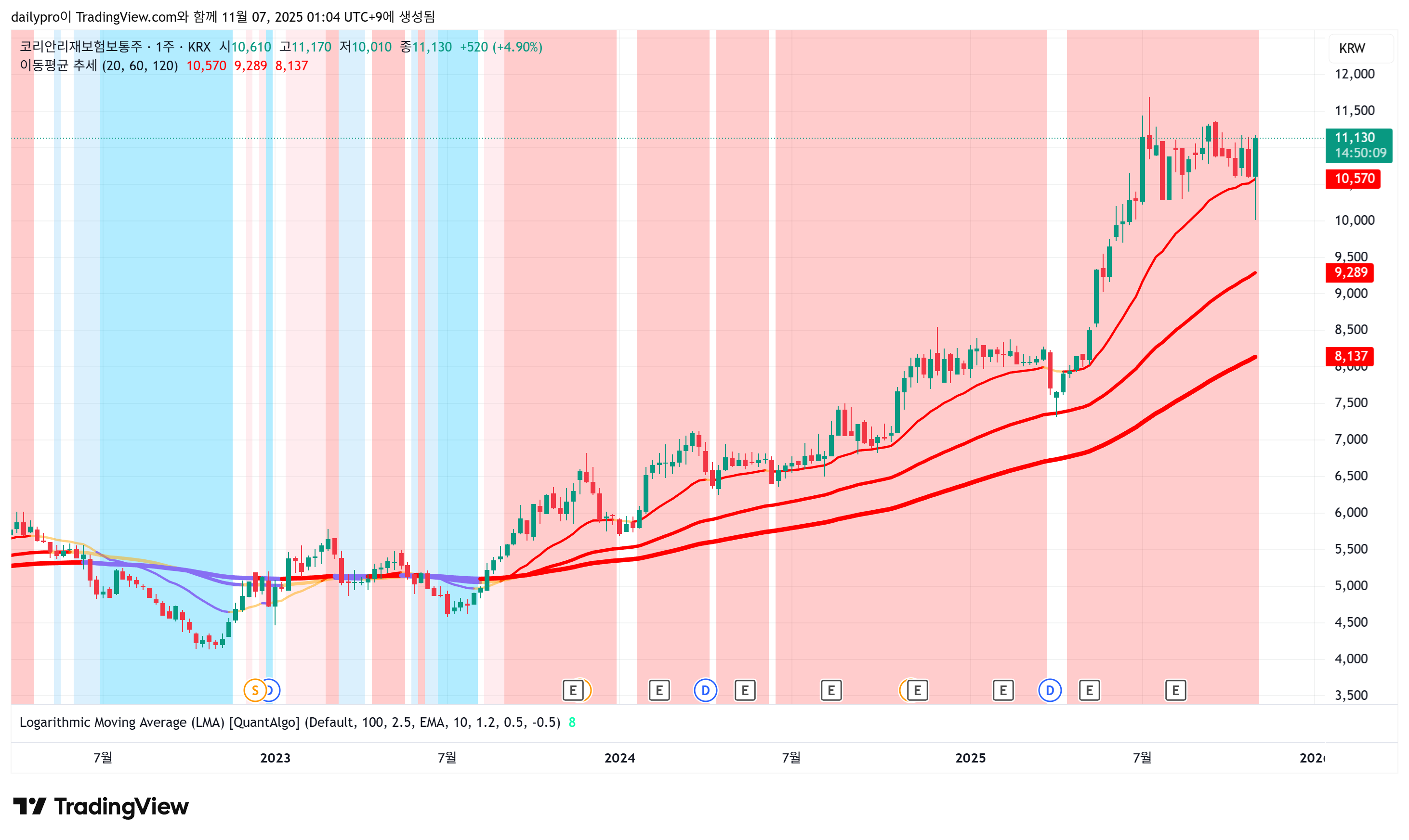 변동성 장세 속 불안한 투자, 코리안리 주가 흐름을 이동평균선 하나로 명확하게 진단하고, 손실을 줄이고 수익을 낼 수 있는 투자 전략을 지금 바로 확인하세요!