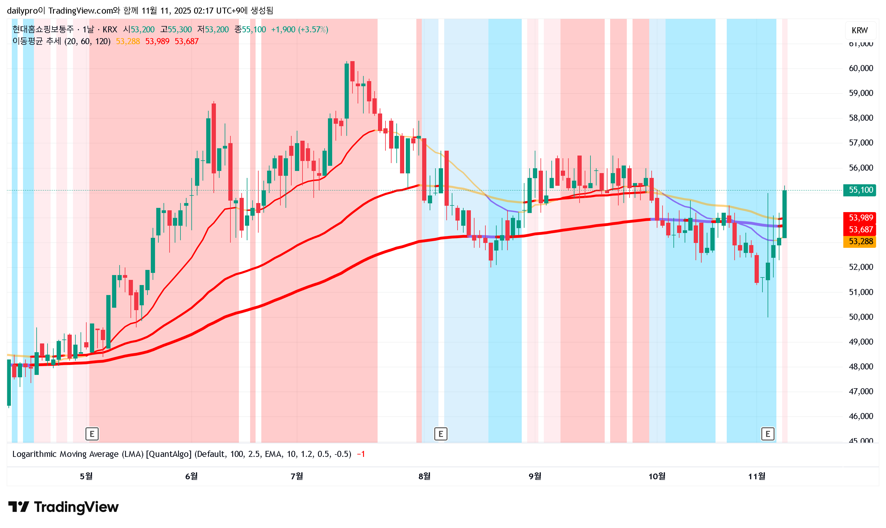 현대홈쇼핑 일봉 차트 (2025.11.10 기준)