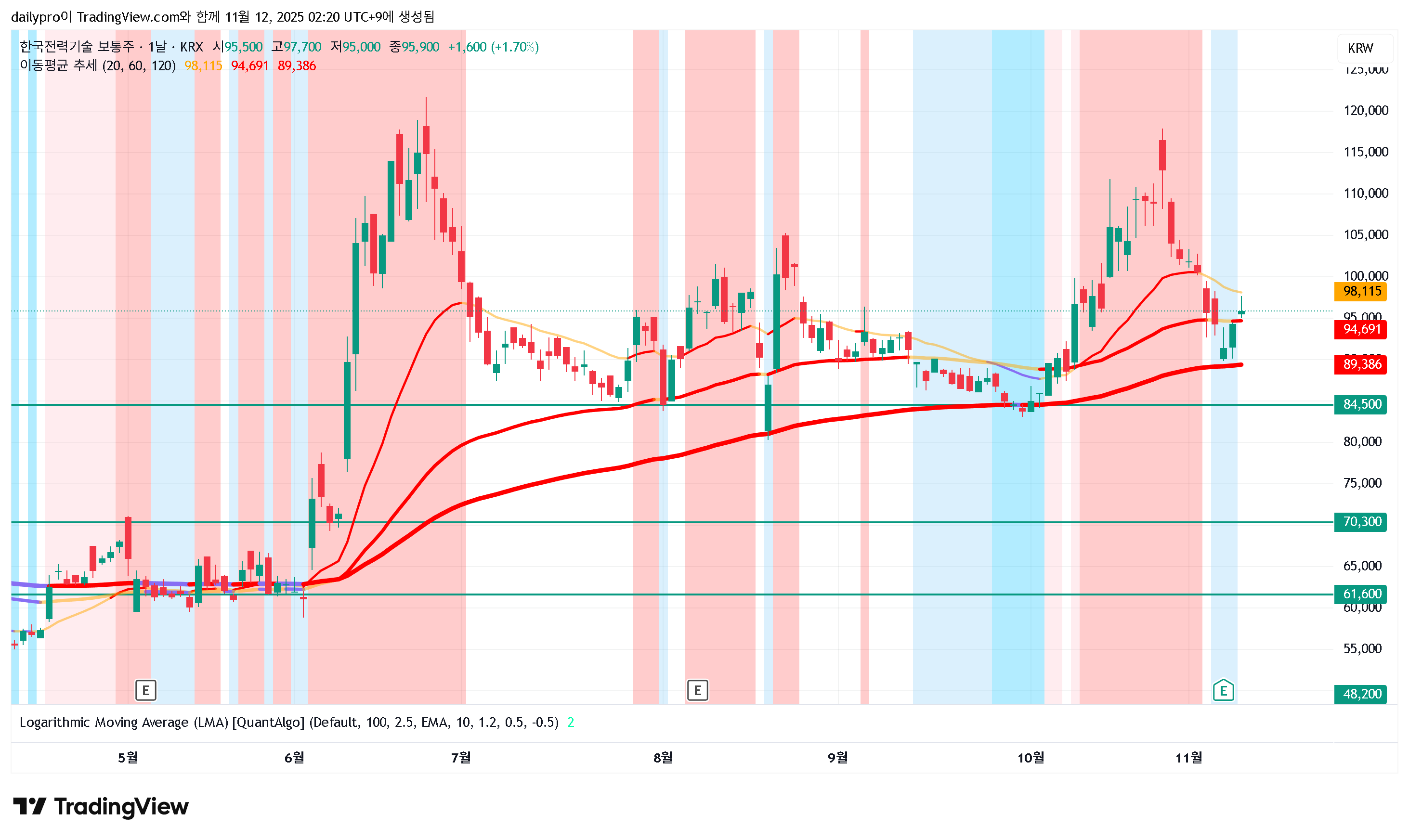 2025년 11월 한전기술 주가, 조정 끝났나? 이동평균선으로 확인해보자
